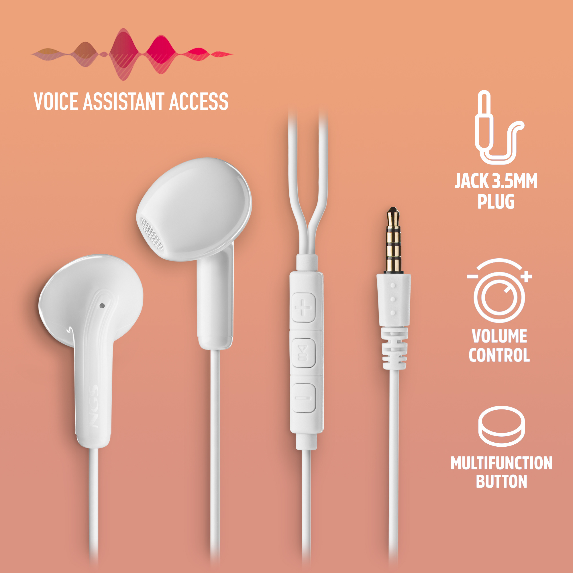 NGS CROSS FLIP WHITE JACK 3.5mm CONNECTION - MICRO CONTROL BUTTONS